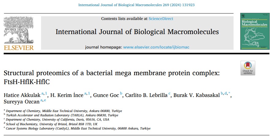 Our members Hatice Akkulak and Hayri Kerim İnce, as first authors, have published their paper, titled “Structural Proteomics of a Bacterial Mega Membrane Protein Complex: FtsH-HflK-HflC”. Co-authored by Günce Göç from the BvK LaB group and Professor Carlito B. Lebrilla and Assoc. Prof. Dr. Sureyya Ozcan Kabasakal, this study became available on April 30, 2024, in the International Journal of Biological Macromolecules.