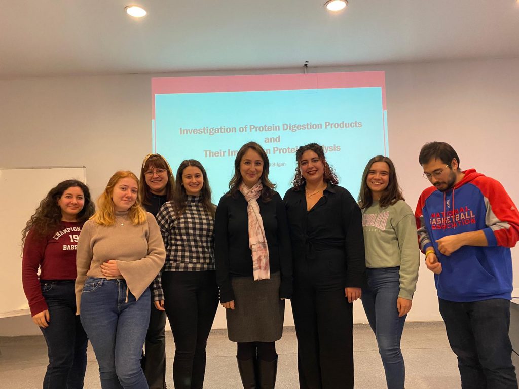 Öykü Su Yıldırım, Elif Akmermer and Hayri Kerim Ince presented their senior class projects! Our lab members worked in different areas of proteomics throughout the semester. Their posters highlighted valuable research work on clinical, plant and structural proteomics.