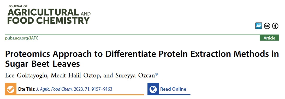 Our alumni member Ece Goktayoğlu’s paper, titled “Proteomics Approach to Differentiate Protein Extraction Methods in Sugar Beet Leaves,” where she is the first author, has been published. The paper, co-authored by our esteemed university professors Mecit Halil Oztop and Sureyya Ozcan, is published on June 5, 2023, in the Journal of Agricultural and Food Chemistry.